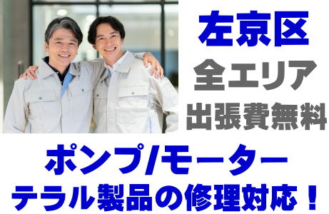 左京区でTERAL製品(井戸ポンプ、水中ポンプ)の故障修理はテラル取り扱い店の当店が即日対応いたします!