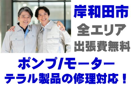 岸和田市でTERAL製品(井戸ポンプ、水中ポンプ)の故障修理はテラル取り扱い店の当店が即日対応いたします!
