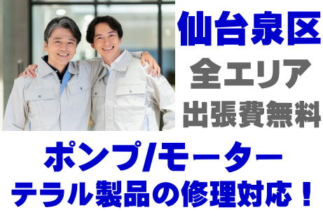 仙台泉区でTERAL製品(井戸ポンプ、水中ポンプ)の故障修理はテラル取り扱い店の当店が即日対応いたします!